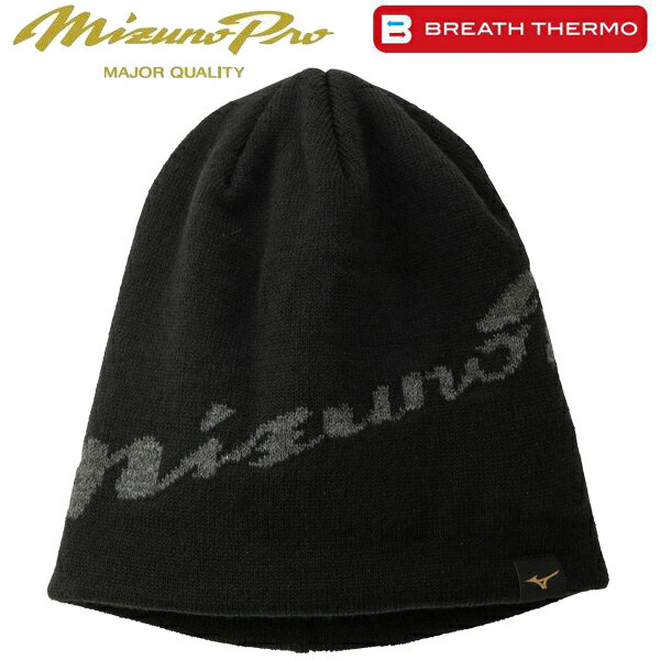 ミズノプロ ニットキャップ ブレスサーモ ニット帽 大人用 12JW0B0109 ブラック