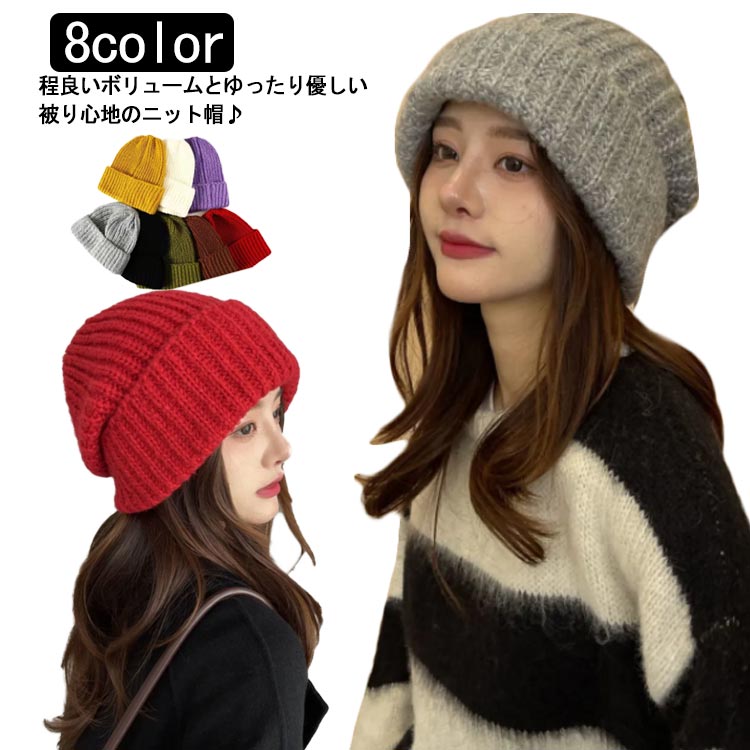 ニット帽 レディース 秋冬 リブ編み 厚手 キャップ ビーニー帽 ニットキャップ ビーニーキャップ ・・・
