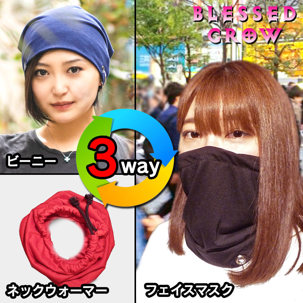 シルバーリング3wayビーニー フェイスマスク ニット帽 ネックウォーマー 春夏 メンズ レディース