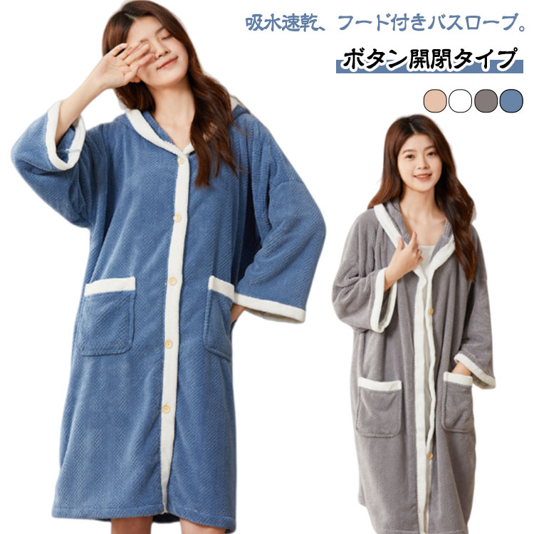 バスローブ レディース ワンオペ 速乾 乾きやすい ガウン ロング フード付きバスローブ 薄手 長袖・・・