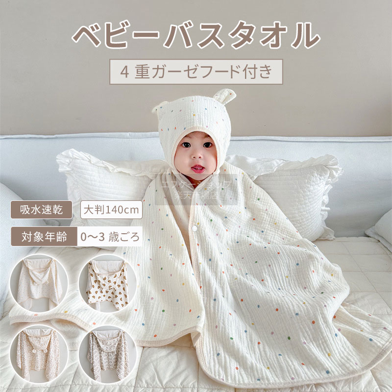 バスローブ ベビー キッズ フード付き バスタオル ガーゼ4重 コットン 綿100% 吸水 速乾 タ・・・