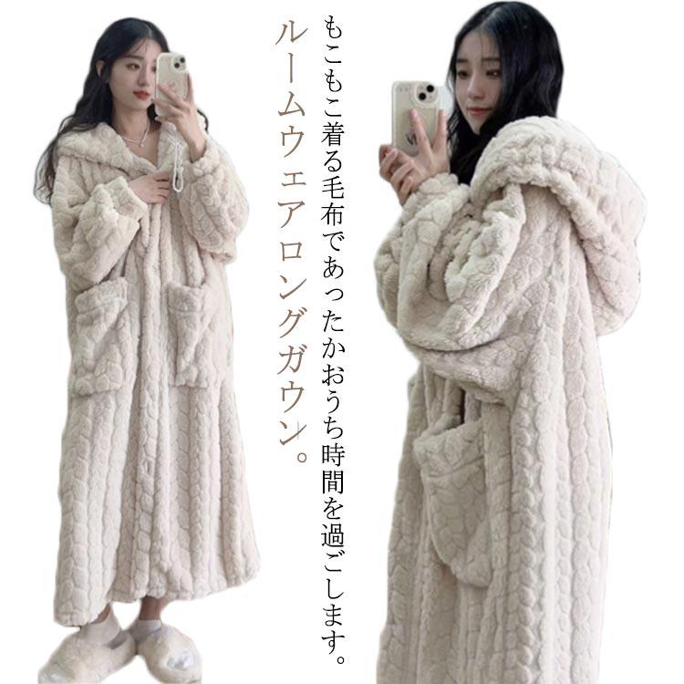 もこもこ 着る毛布 レディース 冬 ボアフリース 寒さ対策 ボタン パジャマ フード付き バスローブ・・・