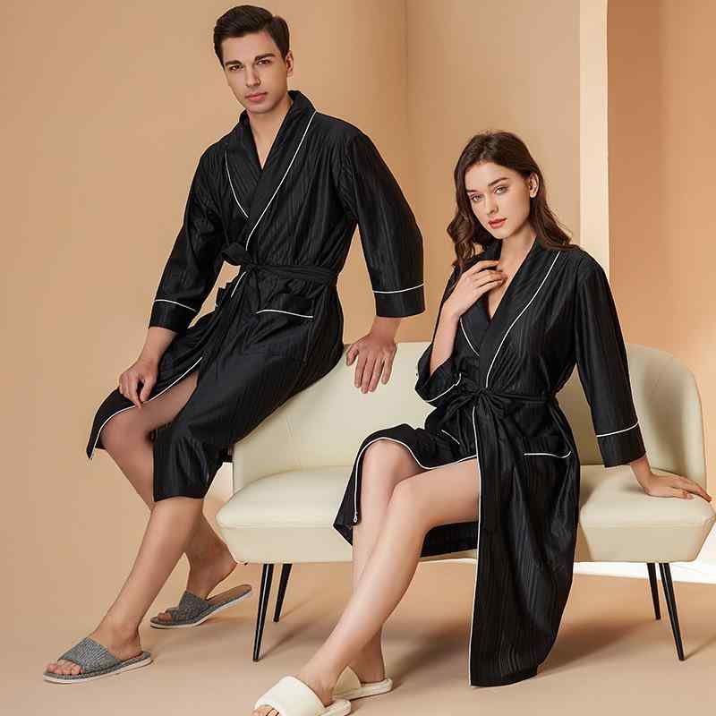 バスローブ レディース メンズ 接触冷感 薄手 高級感 吸水速乾 ミドル丈 ストライプ柄 ナイトガウ・・・