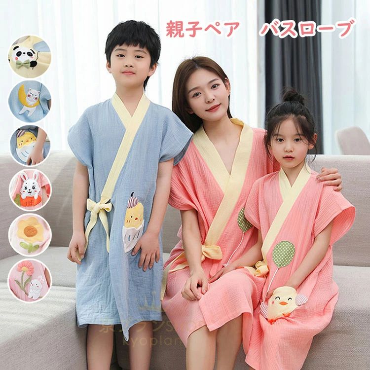 【クーポン最大1000円OFF!】親子ペア バスローブ 子供 春夏秋 男の子 女の子 ガウン 春秋用・・・