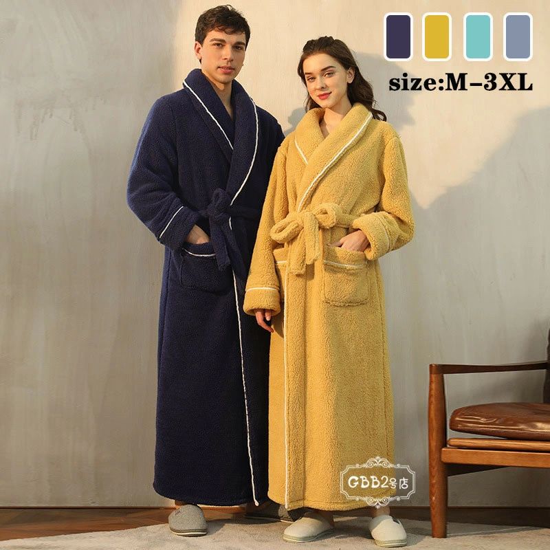 バスローブ レディース メンズ マキシ丈 ルームウェア フランネル ペアガウン ロング丈 厚手 暖か・・・