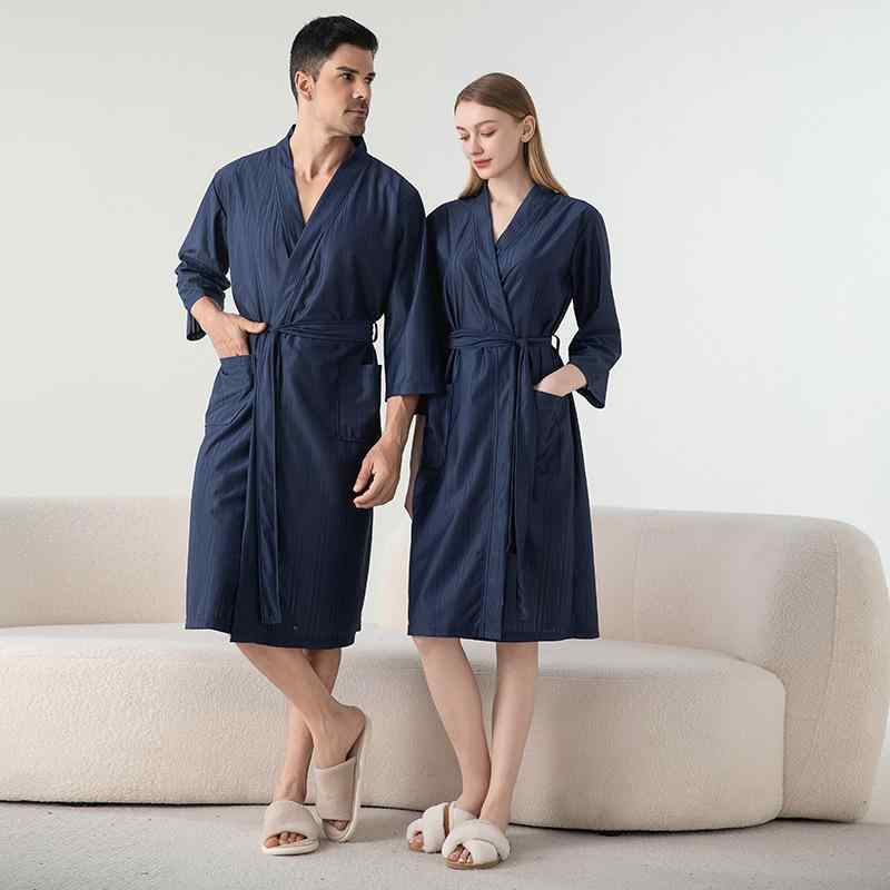 バスローブ メンズ 夏 ホテル ルームウエア レディース 男女兼用 バスローブ 膝丈 七分袖 薄手 ・・・
