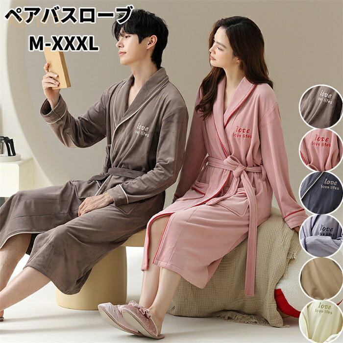 バスローブ カップル ペア 男女兼用 サンゴフリース フランネル 厚手 保温 あったか ゆったり V・・・
