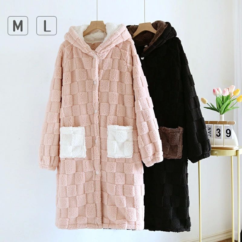 バスローブ レディース メンズ 厚手 ガウン 冬 フード付き バスローブ ボタン ペア バスローブ ・・・