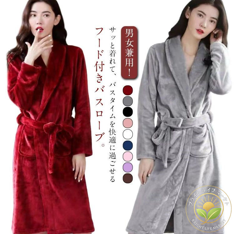 【送料無料】バスローブ ナイトガウン パジャマ メンズ レディース カップル 厚手 保温 ロング丈 ・・・