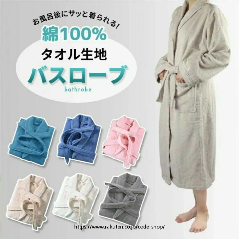 バスローブ ガウン 綿タオル地 ホテル仕様 男女兼用 タオル生地 部屋着 ペア レディース メンズ ・・・
