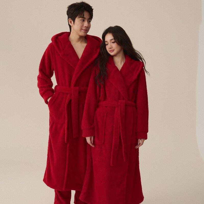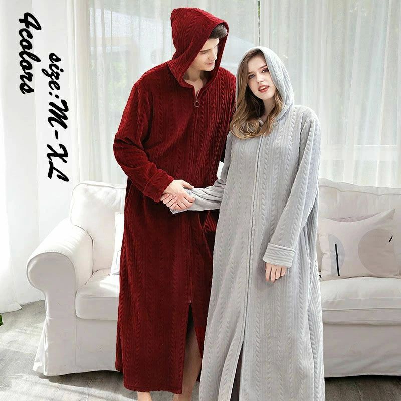 バスローブ レディース メンズ カップル ペア サンゴフリース ポリエステル 超厚手 ロング丈 マキ・・・