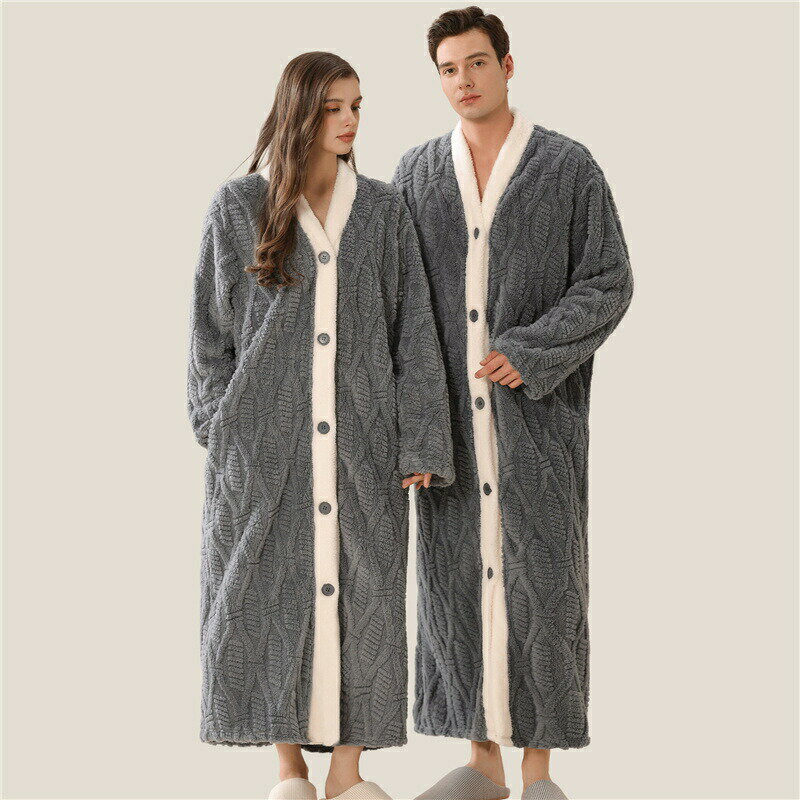 バスローブ ガウン ペア 男女兼用 秋冬 サンゴフリース フランネル ポリエステル 保温 あったか ・・・