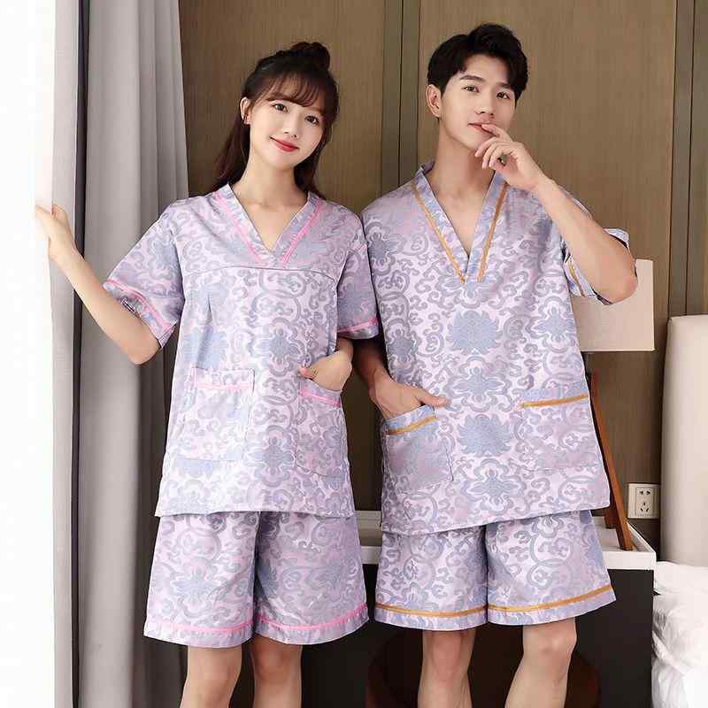 ルームウェア 男女兼用 綿混素材 ストライプ柄 半袖 吸汗速乾機能付き カップル ペア対応 サウナ ・・・