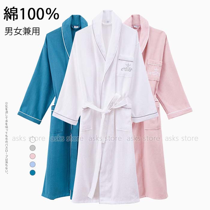 綿 浴衣 バスローブ 男女兼用 ペアルック パジャマ 部屋着 寝巻き メンズ バスローブ ワッフル格・・・