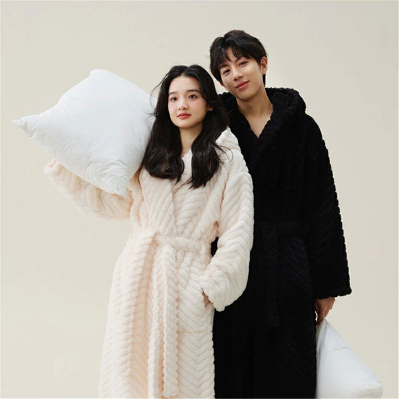 バスローブ ペア カップル もこもこ 厚手 冬 裏起毛 秋冬 ロング 高級 フランネル タオル地 レ・・・