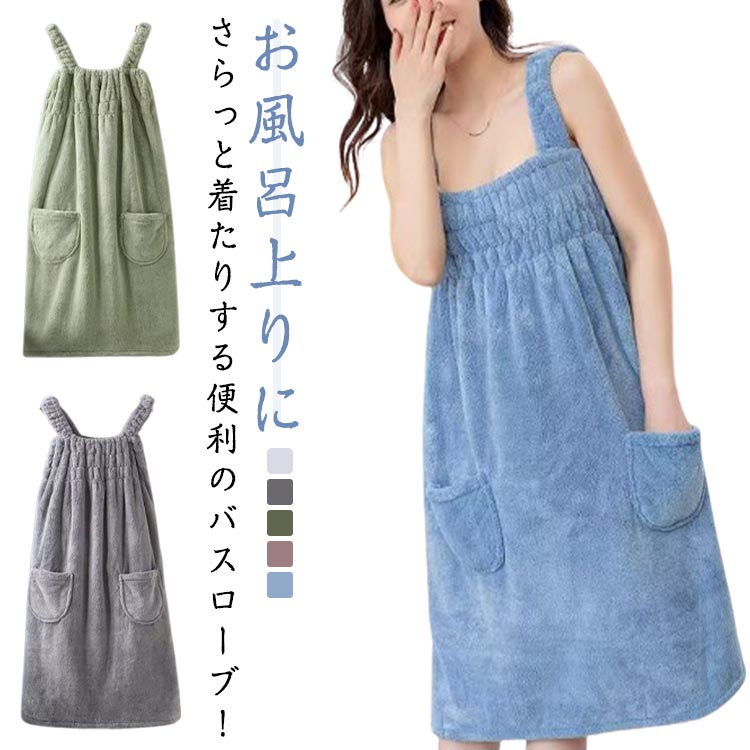 バスローブ レディース タオルワンピース マイクロファイバー ふわふわ 吸水力 ルームウエア 自宅用・・・