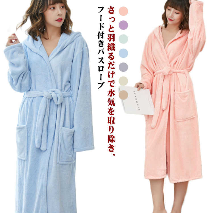 軽い 女子力アップ マイクロファイバー ふわふわ バスローブ 2タイプ選べる バスローブ 薄手 ラッ・・・