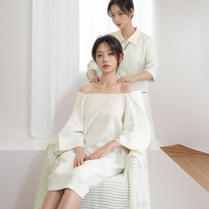 バスローブ レディース 綿 美容室 ワッフル マッサージ カーキ グレー 白 シンプル 無地 通気性・・・