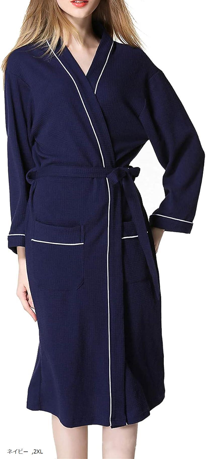 バスローブ レディース ガウン ワッフル生地 お風呂上り ボディタオル 男女兼用 速乾(ネイビー, ・・・