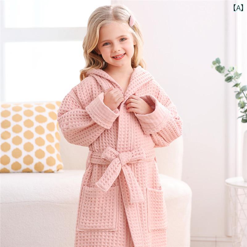 子供 春秋用 女の子男の子 単品売り 薄手 長袖 春夏用 ワッフル バスローブ 風呂 温泉 女の子男・・・
