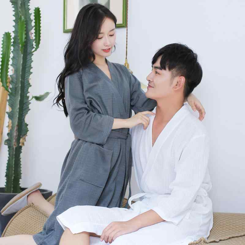 バスローブ 男女兼用 オールシーズン 吸水速乾 薄手 ワッフル生地 ロング丈 快適 ガウン カップル・・・