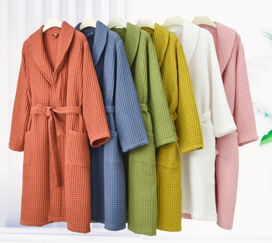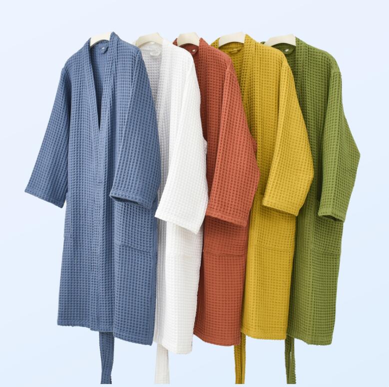 送料無料 バスローブ レディース メンズ 女性 男性 ナイトガウン ワッフル 薄手 七分袖 カップル・・・