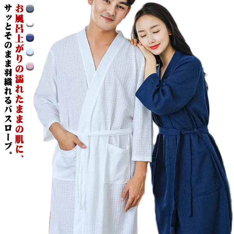 バスローブ レディース メンズ 薄手 春 男女兼用 綿 ワッフル生地 ホテル 美容院 部屋着 ルーム・・・
