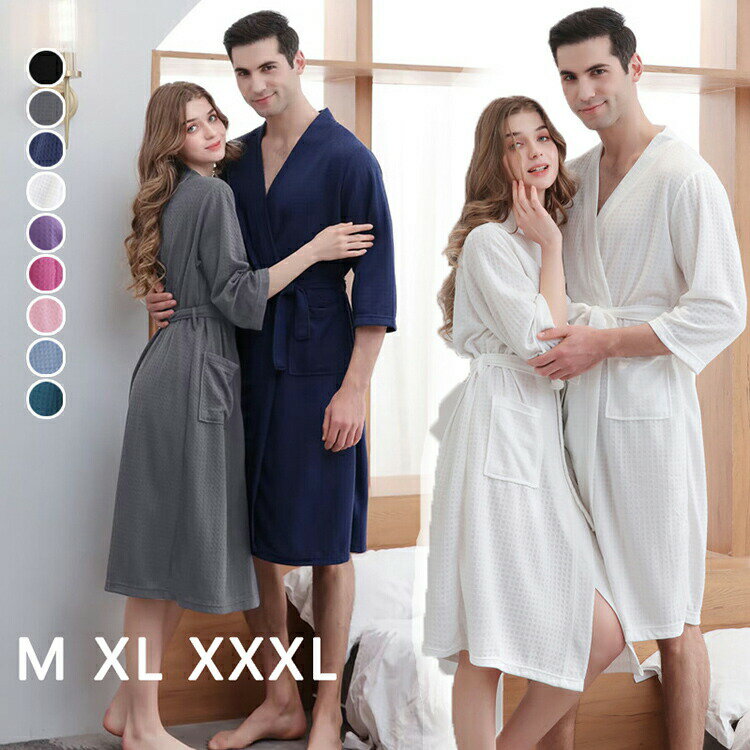 送料無料 バスローブ レディース メンズ 女性 男性 ナイトガウン ワッフル 薄手 七分袖 カップル・・・