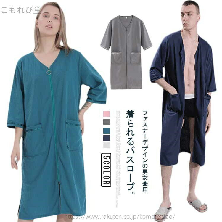 【送料無料】バスローブ ガウン ナイトウエア 男女兼用 無地 ワッフル 入浴 シャワー 風呂上り ポ・・・