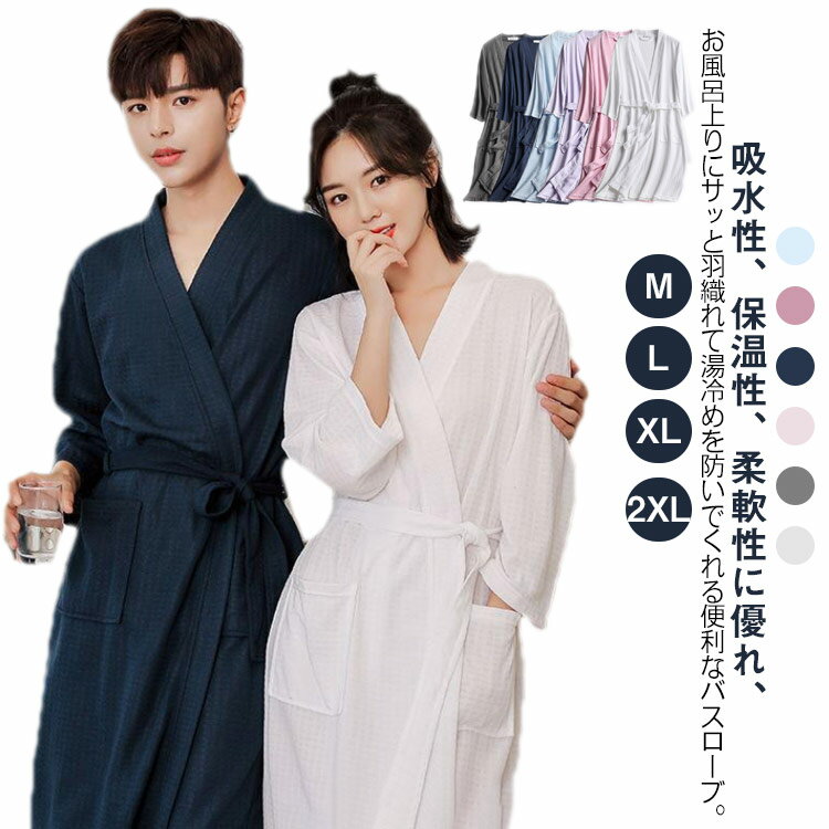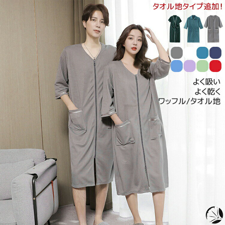 バスローブ レディース メンズ 夏春秋 薄手 綿混 男女兼用 ワッフル生地 速乾 タオル地 ガウン ・・・