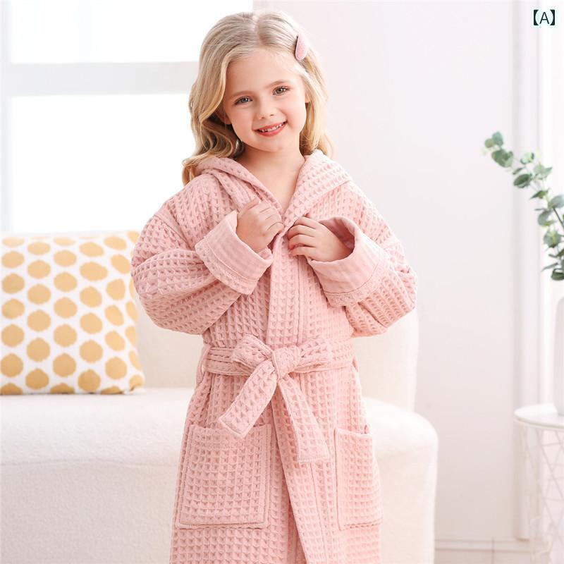 子供用浴衣 A類 浴袍 ワッフルガーゼ 綿100% 吸水性 厚手 バスローブ 寝巻き 中大儿童 男女・・・