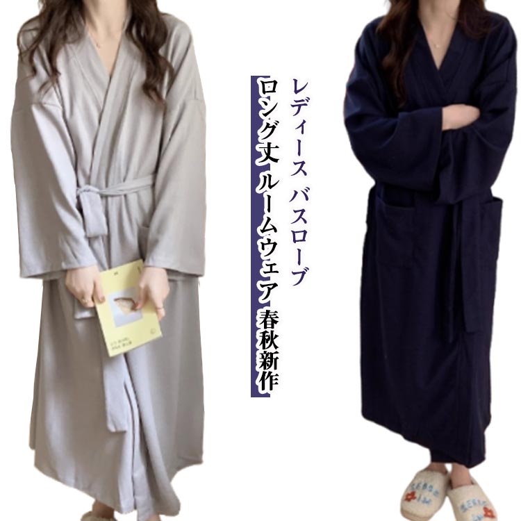 バスローブ 浴衣 レディース 長袖 ロング丈 パジャマ ルームウエア ワッフル 無地 ナイトウエア ・・・