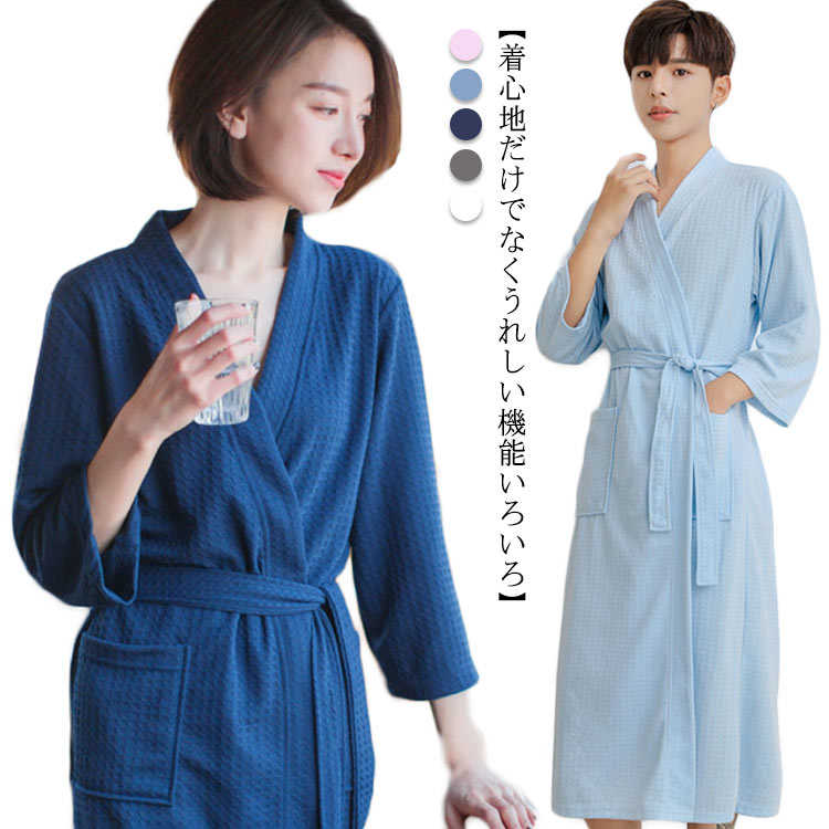 【送料無料】ワッフル生地 パジャマ メンズ レディース ルームウェア ナイトガウン 温泉 風呂 速乾・・・
