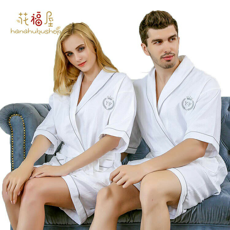 [HOMEWAY]バスローブ薄手夏レディースガウンワッフル生地部屋着ルームウェア優しい肌触り男女兼用・・・