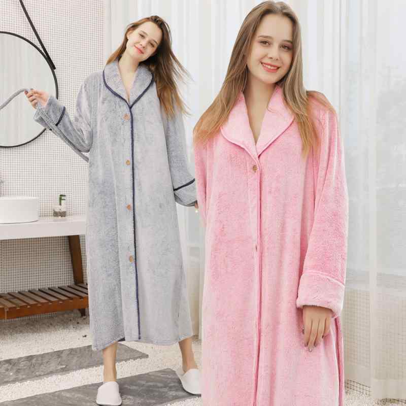 ルームウェア レディース メンズ カップル 厚手 フランネル ポリエステル 長袖 ロング丈 前開き ・・・