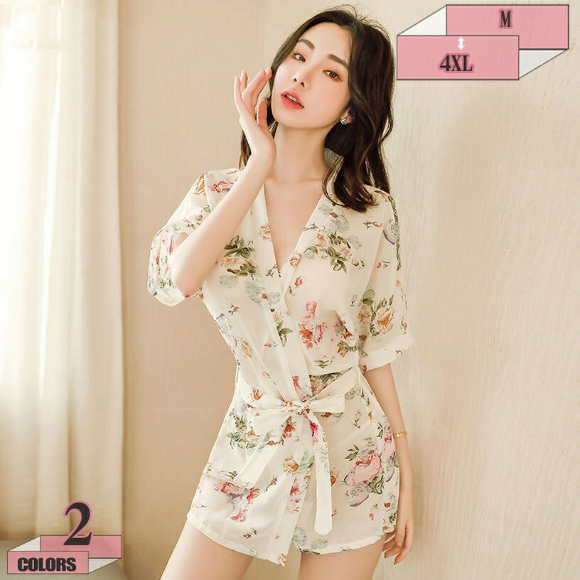 777円OFFクーポン バスローブ レディース ガウン 浴衣 和風パジャマ お風呂上がり ルームウェ・・・