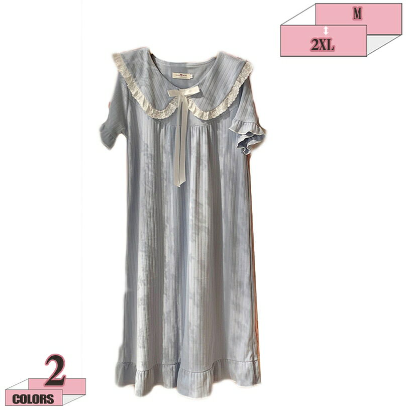 バスローブ レディース パジャマ ワンピース 半袖 前開き ルームウェア ナイトガウン 部屋着 ナイ・・・