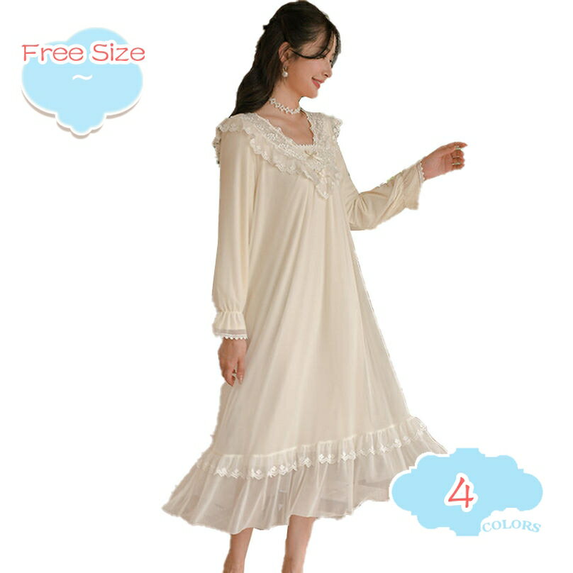 レディースネグリジェ ロング丈 ルームウェア 長袖 パジャマ ゆったり 肌に優しい 春秋 適用 部屋・・・