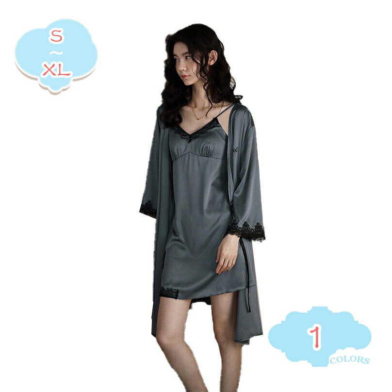 レディース パジャマ 半袖 ワンピース ガウン シルク かわいい 無地 純色 エレガント ソフト ル・・・