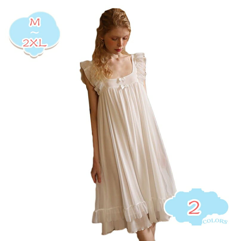 777円OFFクーポン ネグリジェ 長袖 ナイトウェア パジャマ レース 無地 レディース ナイトガ・・・