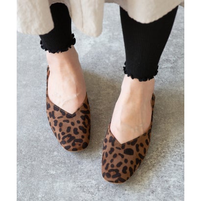 メヌエ Menue スクエアトゥ 2wayバブーシュ (レオパード/スエード調)