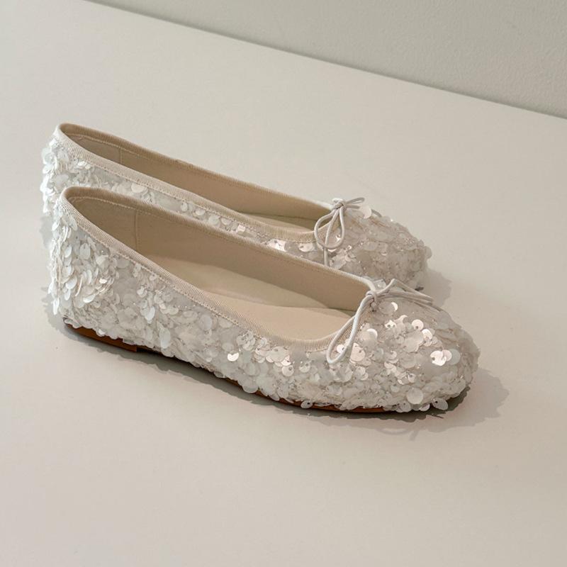 バレエシューズ レディース フラットシューズ ラウンドトゥ 浅履き スパンコール リボン 春夏 ロー・・・