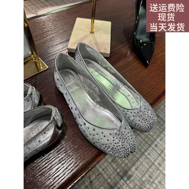スプライシング チェーン飾り バレエシューズ 格子縞 女性 レディース 牛革 スプリットトゥ 夏 ア・・・