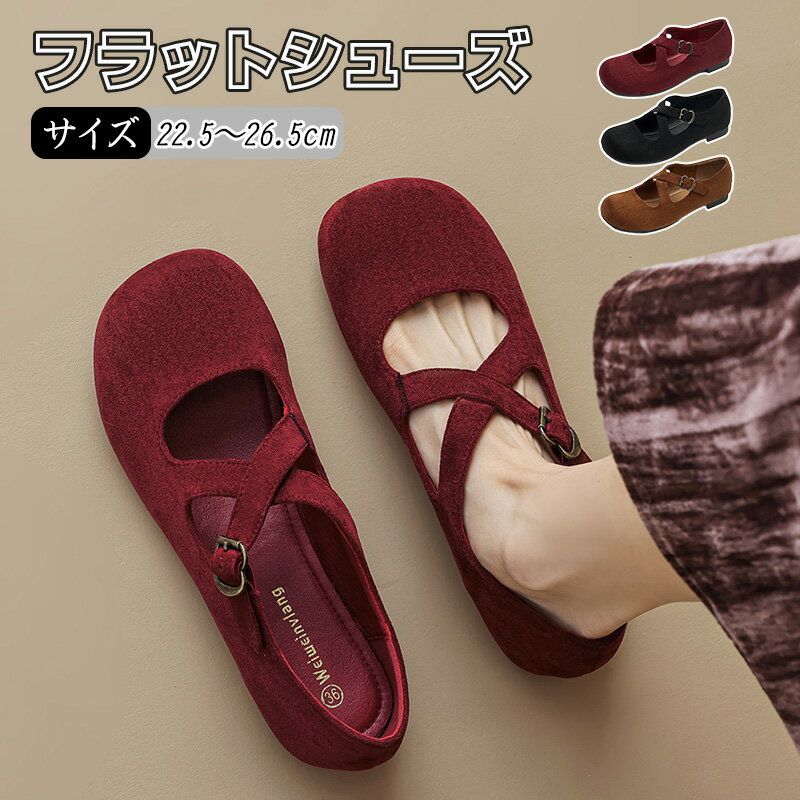 送料無料 パンプス ポインテッドトゥ ぺたんこ パンプス 歩きやすい ストラップ付き かわいい 柔ら・・・
