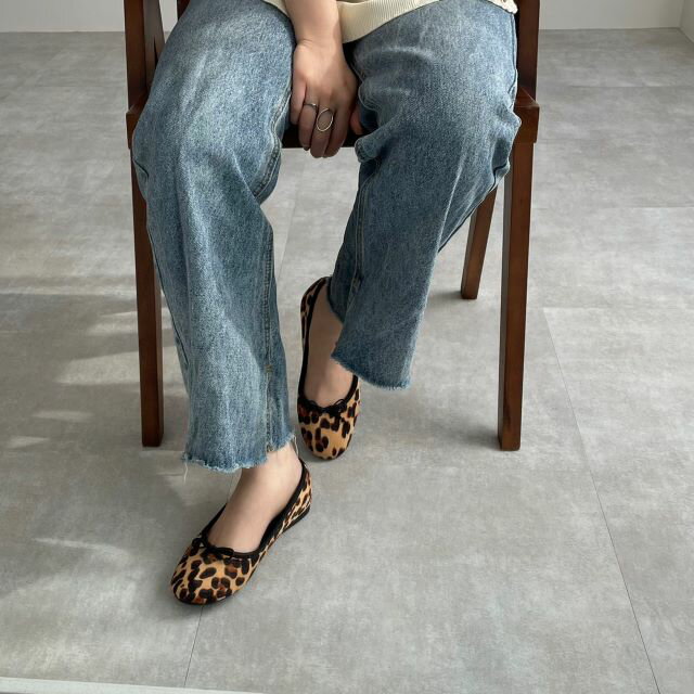 レオパード ヒョウ柄 バレエシューズ ベージュ/ブラウン