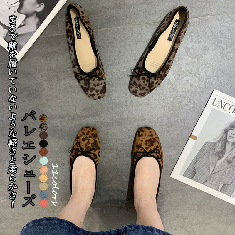 バレエシューズ スウェード調 パンプス 黒 レオパード 痛くない 仕事用 履きやすい ローヒール 歩・・・
