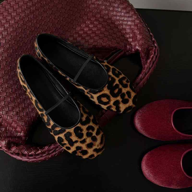 靴 メリージェーン レディース ハラコ 本革 ワンストラップ 甲浅 ワインレッド 豹柄 ラウンドトゥ・・・