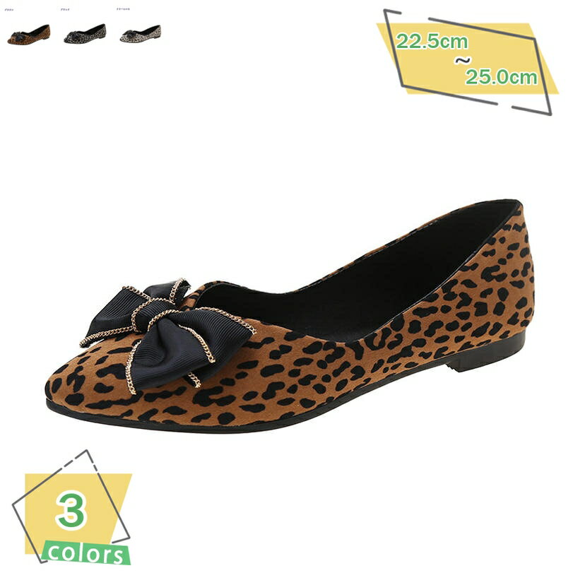 ヒョウ柄 パンプス レオパード シューズ ヒョウ 柄 靴 リボン付き バレエシューズ フラット ぺた・・・