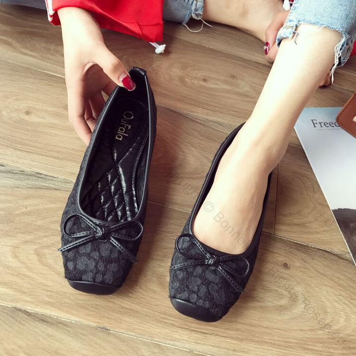 靴 パンプス レディース 女性用 ソフトソール かかと脱げ防止 リボン スクエアトゥ 浅履き ローヒ・・・