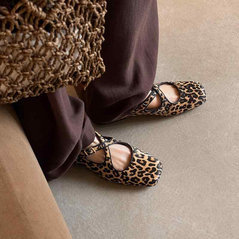 バレエシューズ レディース マリージェーン ヒョウ柄 ワンストラップ フラット ラウンドトゥ ソフト・・・